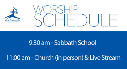 Welcome to the West Covina Hills Seventh-day Adventist Church! At our church, every member is a minister and we want to share the gift of salvation and lead others to Christ. We look forward to meeting you and sharing a love for our Saviour, Jesus Christ.